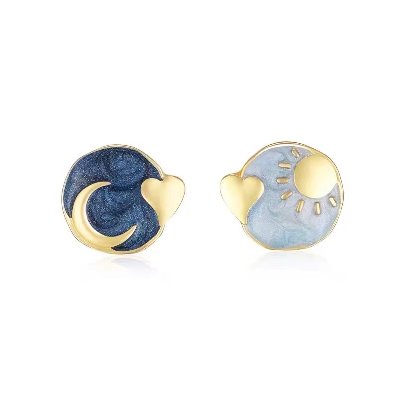 8 Hours Time Difference ~ Lovely Sweet Spring Summer Star Moon Asymmetrical Earrings Cure Blue Love Earrings New Earrings